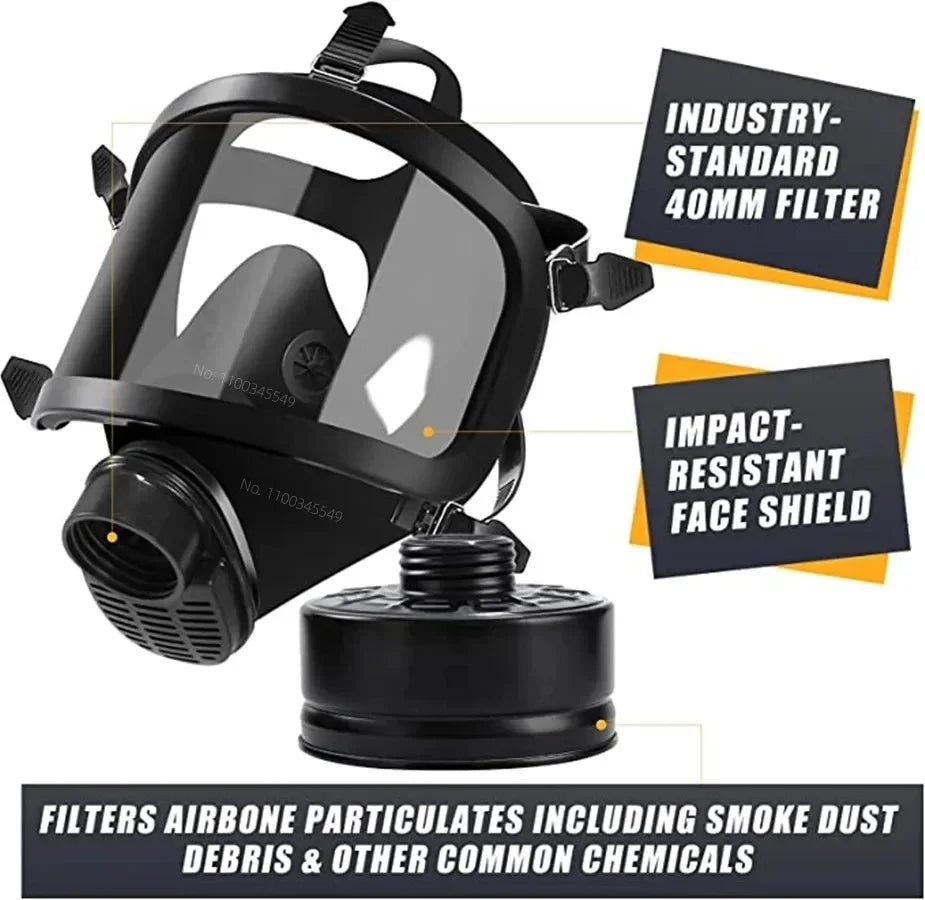 Aplicación eficiente: Compatible con el cartucho de filtro de gas estándar de 40 mm, la pantalla facial completa bloquea diversas sustancias. Ideal para la filtración de radiación nuclear de polvo fino, niebla, humos metálicos o pintura en aerosol. Apto para pulverización, soldadura, operaciones agrícolas, pulido, industria petrolera, minería, protección de tecnología ambiental, etc.